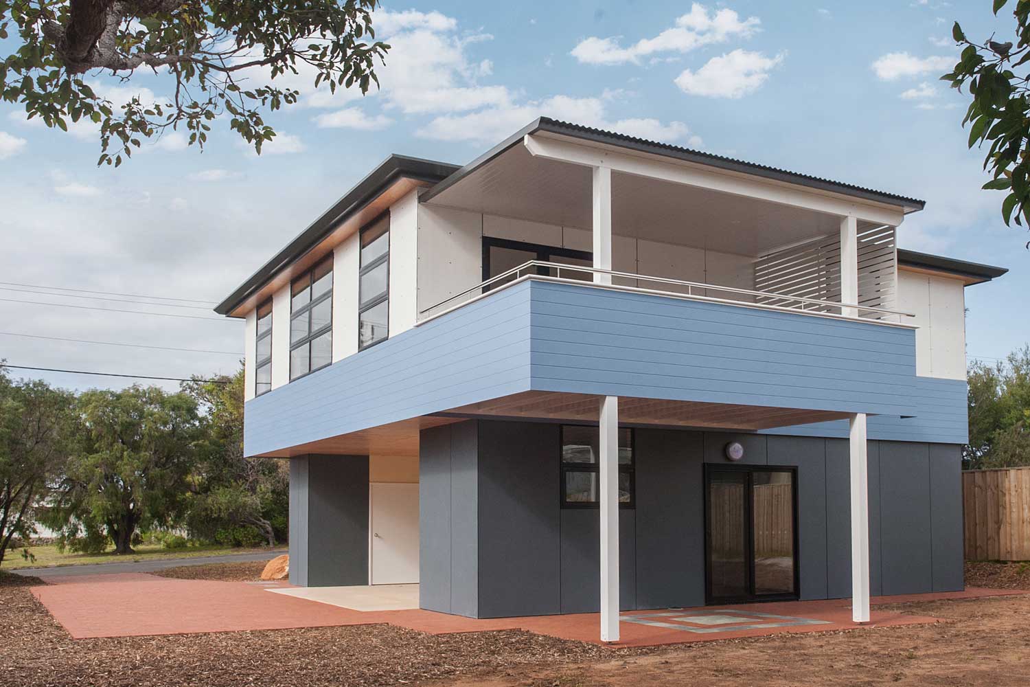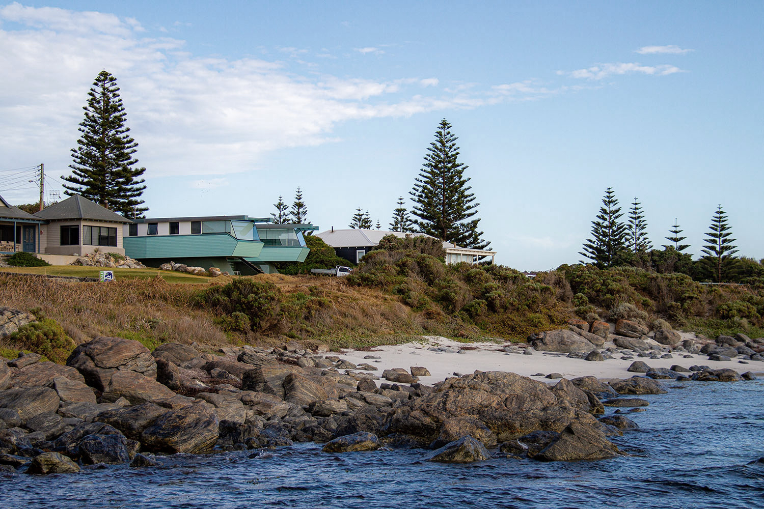 Upon closure of the port facilities, the area began being used by holiday makers who illegally built fibro squater shacks over the disused rail yards. These shacks were eventually recognised and surveyed in the informal arrangement that exists today. The fibro style beach shack has left a lasting impression on the Flinders Bay settlement with a number of the original houses still in existance. The Augusta Beach House adopts many characteristics of these homes including their modest scale, bands of weatherboard and fibro, their bright colours, their raised floors and their simple roof lines.