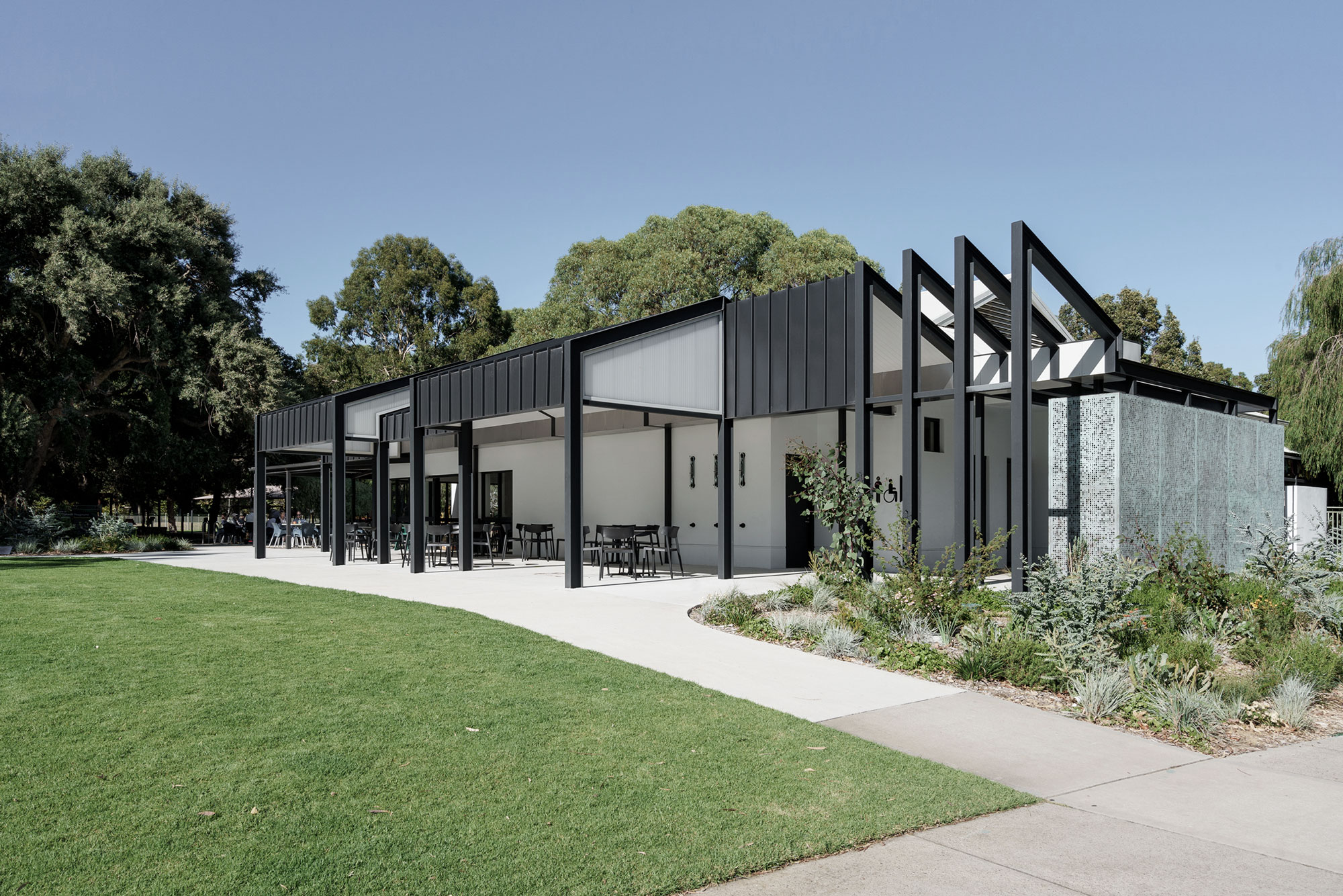 As part of a renewal project for the Biara Café and its associated playground, a new canopy structure was designed in order to enhance the external aesthetic of the building. A new steel structure was integrated onto the original building with stepped volumes creating movement and enhancing the entrance sequence into the café. The tall volumes provide a bright, generous space to sip a coffee in the morning sun whilst offering relief from the harsh summer days.