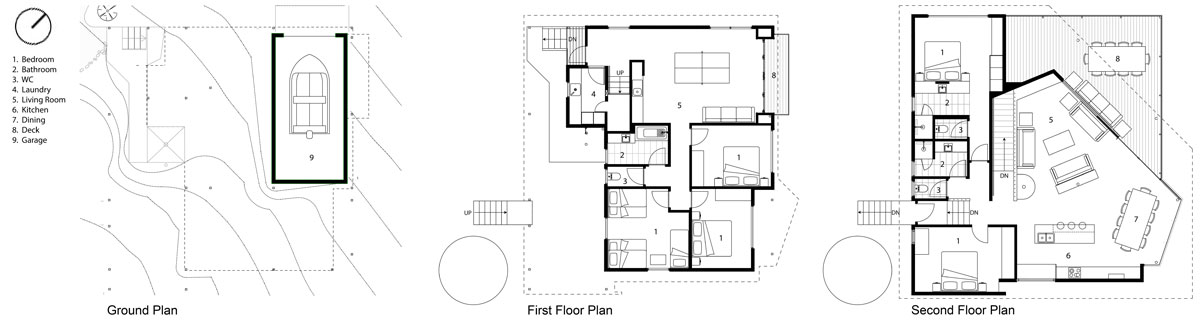 Located on a steep site in the township of Eagle Bay in the City of Busselton this beach house is spread over three levels that cascade down the property. The house provides five bedrooms and three bathrooms in a light-weight structure that is consistent with traditional qualities of a holiday home.