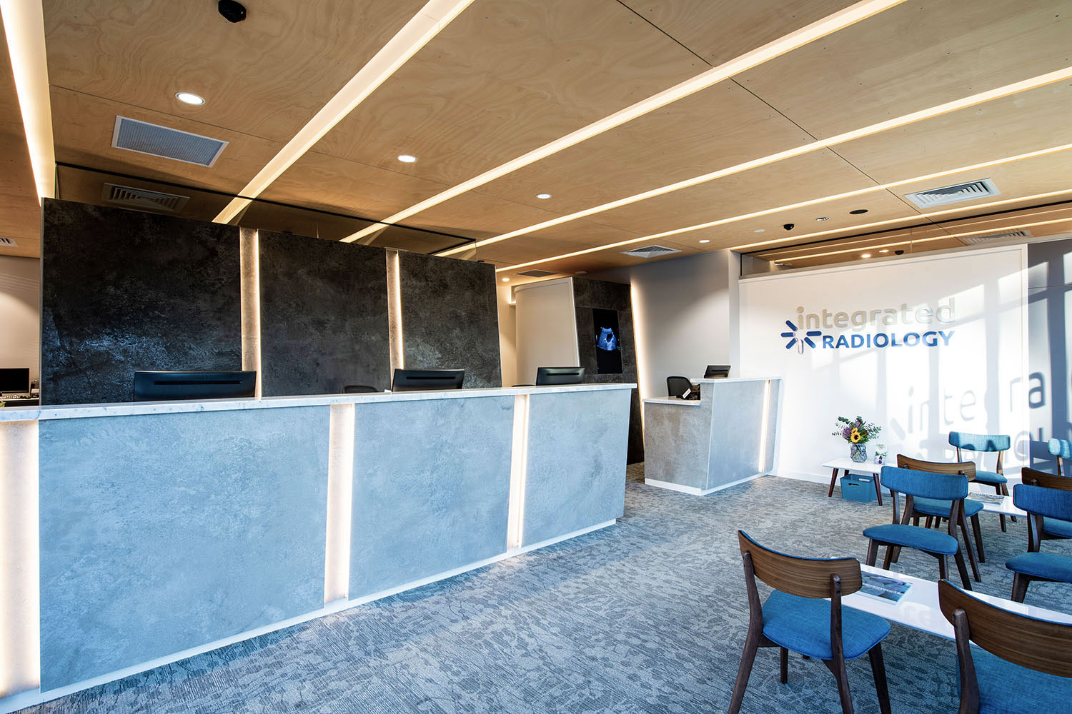 Integrated Radiology in East Fremantle is a high-quality fit out for a Radiology business that provides X-Ray, CT and Ultrasound services. The fit-out itself was designed to reflect the high-technology nature of the radiology services, and to avoid the bland pastel colour pallet of apparently soothing colours that seem to permeate health care design.