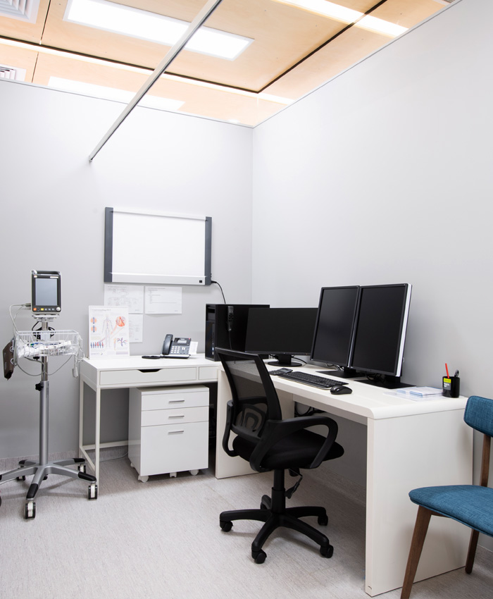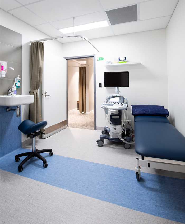 The design utilises timber ceilings, linear lighting and porcelain finishes to create modern and comfortable spaces. The fit-out, which spans three different tenancies required compliance with health care standards and incorporated additional technical aspects such X-ray shielding and high-end data and electrical infrastructure.