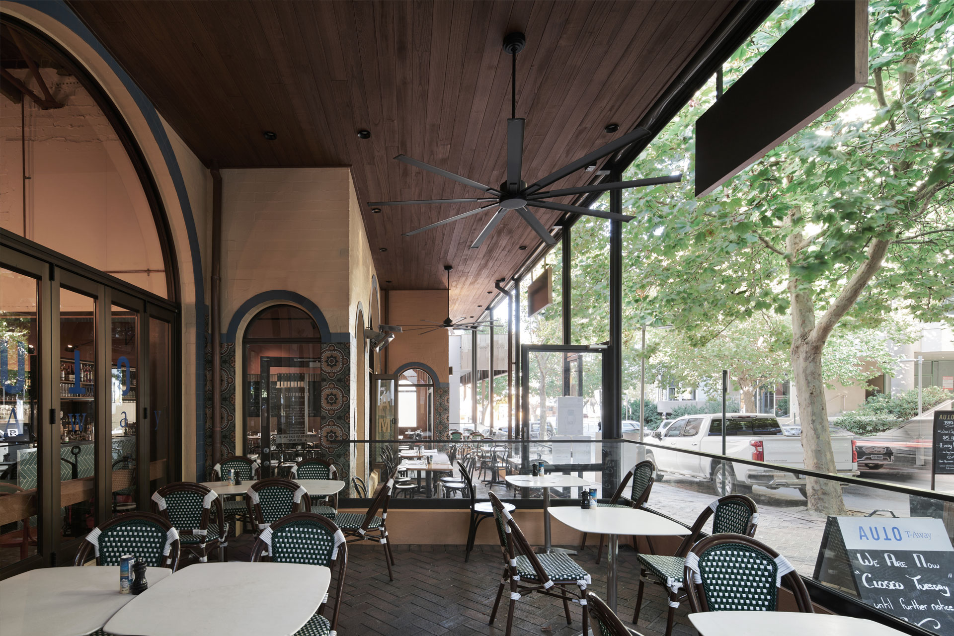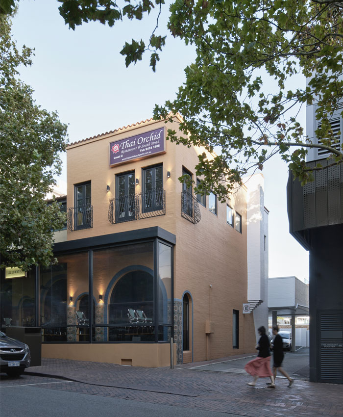 The resultant building reads as a townscape. It utilises colour to differentiate the forms and adds stylistic flourishes such as new pergolas, detailed tile work, and new wrought iron. The building now reads as a unified assemblage of different forms and differentiated businesses.